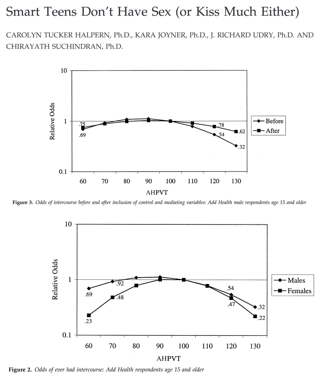 High IQ young men are less likely to have sex than people who are so low IQ that they're functionally mentally disabled.